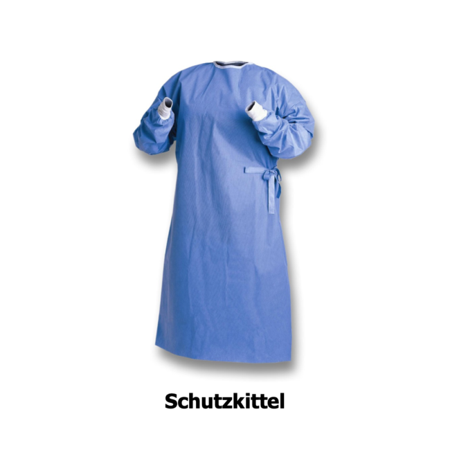 Schutzkittel Einweg Schutzkittel aus Vliesstoff. Super leichter und angenehmer Tragekomfort mit Verschlussbänder an Hals und Taille sowie elastischen Strickbündchen an den Ärmeln. Leichtes, atmungsaktives Material, sehr reißfest und zugleich feuchtigkeitsabweisend, unsteril. EN 14126 Die Norm DIN EN 14126 umfasst folgende Tests für das Material der Schutzbekleidung: 1.Penetrationstest mit synthetischem Blut (ISO/FDIS 11603) 2.Widerstand gegen Viren…