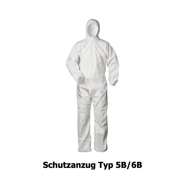 Schutzanzug Typ 5B/6B Der Einweg Schutzanzug besteht aus einer mikroporösen, laminierten Vliesschicht, die garantiert sowohl Schutz als auch Komfort beim Kontakt mit Flüssigkeiten und Partikeln bietet. Merkmal für geringen Wärmewiderstand mit hoher Wasserdampfdurchlässigkeit und guter Atmungsaktivität. 2-teilige Kapuze, Nylon-Reißverschluss, Gummizüge an der Kapuze, Arm- und Beinenden sowie im Taillenbereich Farbe: weiß Material: Polyethylenvlies Größen: S-XXXL…